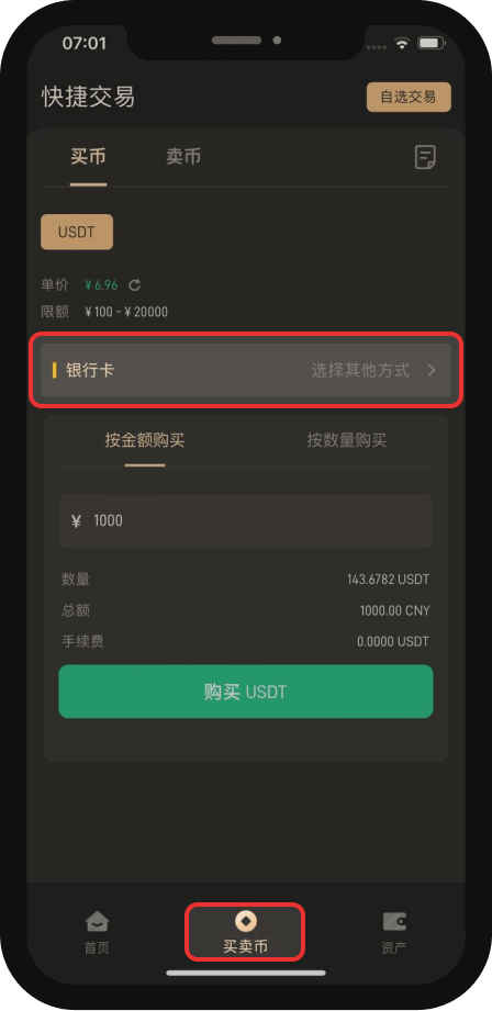 3、打开您的个人数字钱包,若您的账户里没有USDT数额,需要先完成USDT购买。