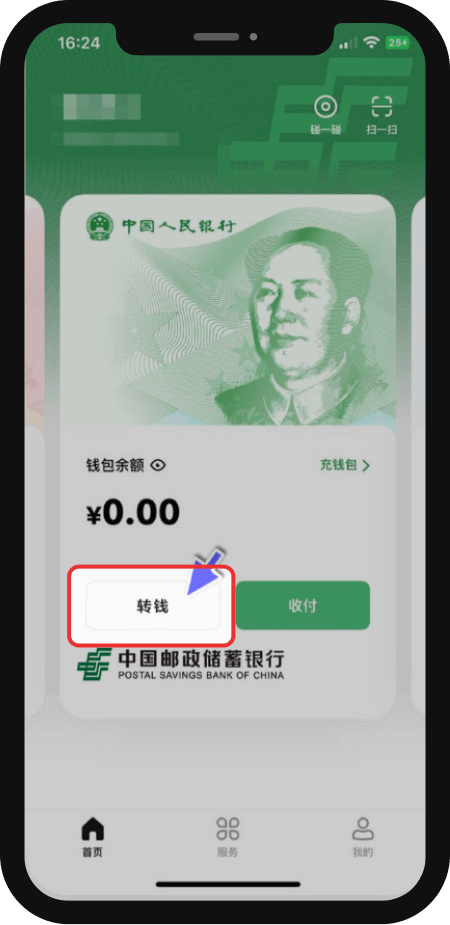 3、复制钱包编号,打开数字人民币APP,点击转钱