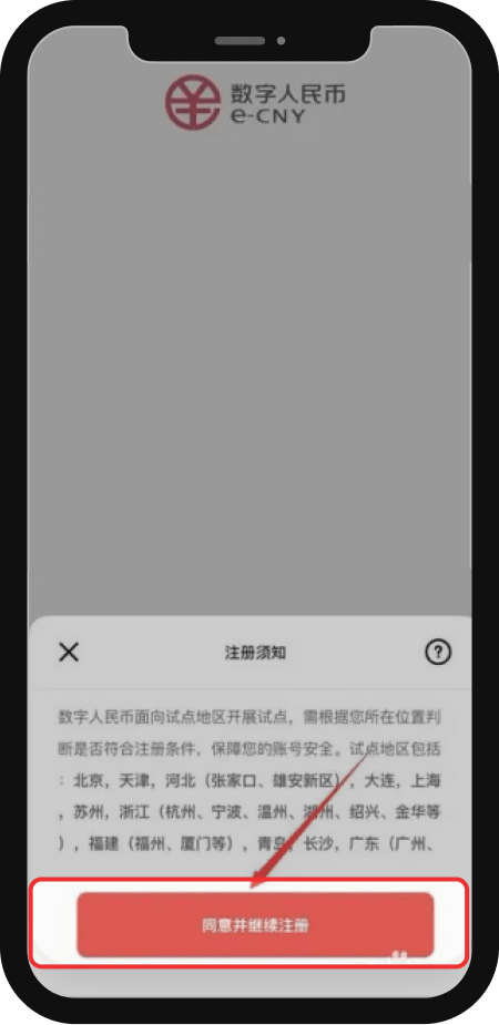 3、点击【同意并继续注册】 注:不在试点范围内的手机号,可请在试点范围内的朋友注册后,在登录。